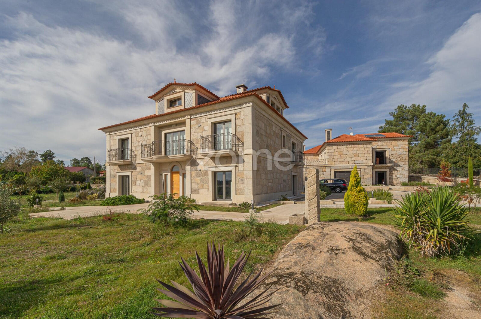 Uma propriedade incomparável com 8.500 m² totalmente murados, acabamentos de luxo e arquitetura em pedra com isolamento moderno. A moradia principal oferece uma sala de 100 m² com lareira, cozinha com ilha e 4 suítes completas, todas com varandas recuadas e acabamentos Porcelanosa. O sótão inclui duas suítes adicionais e arrumações.Os exteriores são um verdadeiro cenário de resort: piscina de 15x5 m com área infantil, jardins simétricos, pavimentos em granito, iluminação noturna e mesa em pedra para convívio. Dispõe ainda de furo artesiano, poço e pré-instalações para sauna, jacuzzi e balneários.Uma segunda moradia, já estruturada, oferece T0, T1 e T2 com potencial para alojamento turístico. O restante terreno permite construir bangalôs mantendo a harmonia natural — ideal para turismo rural de alto valor.